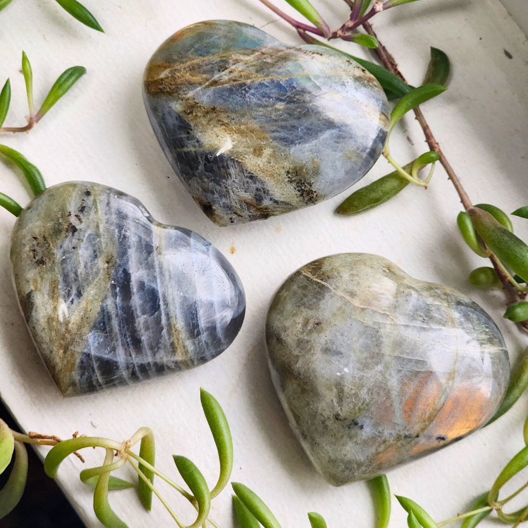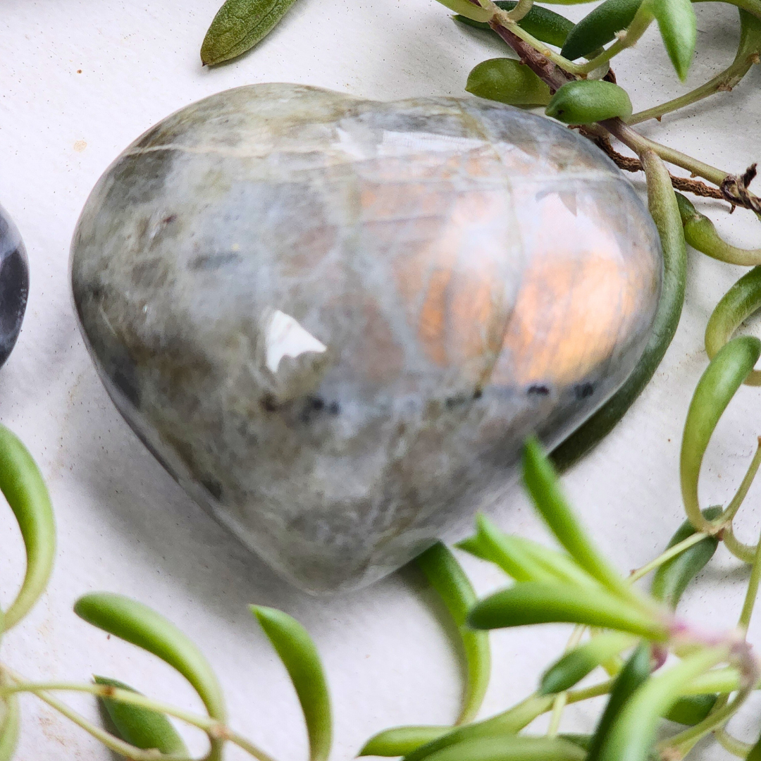 Labradorite is often called the “Stone of Transformation” and is celebrated for its ability to enhance intuition, protection, and spiritual insight. This heart-shaped crystal is perfect for those seeking to unlock their higher consciousness, shield themselves from negativity, and bring balance to their energy.
