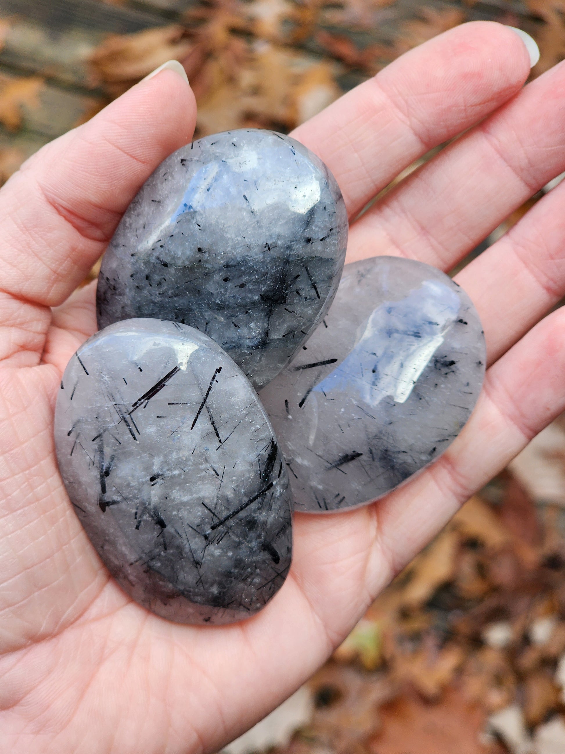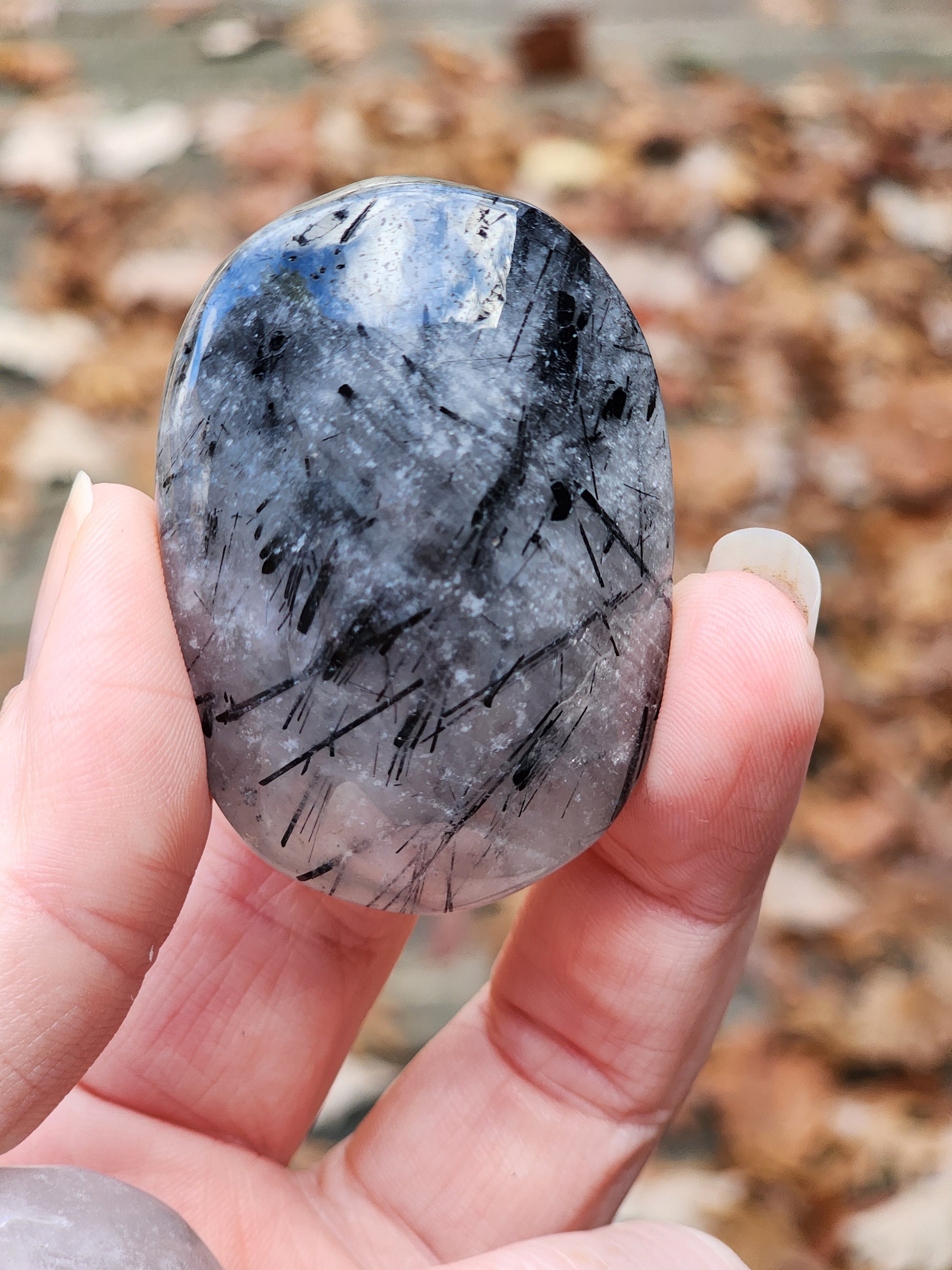 Quartz with Rutilated Black Tourmaline Palm Stone